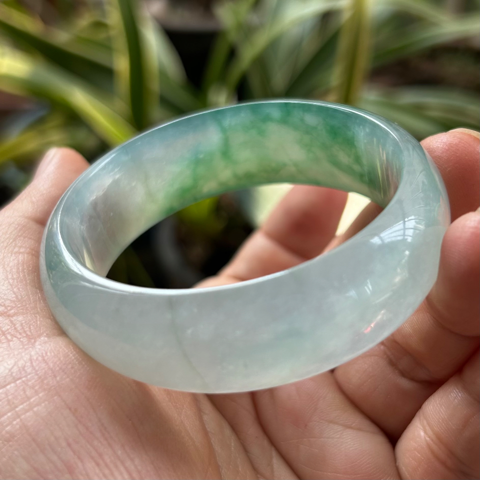 Icy Green Flower Jadeite Imperial Concubine Bracelet (54.9-49.2mm)