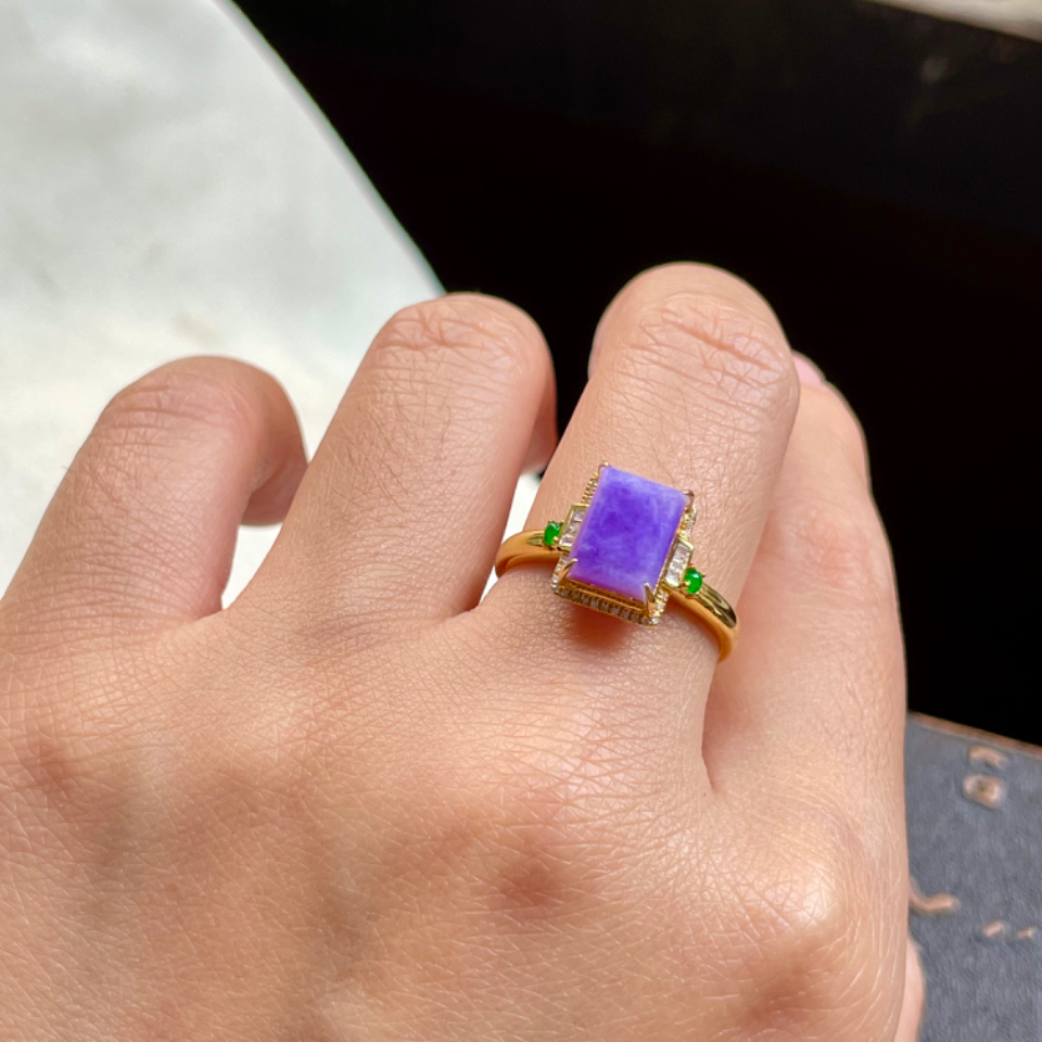 Be the first to review “Icy Violet Jadeite Ring with Gold and Diamonds” Cancel reply